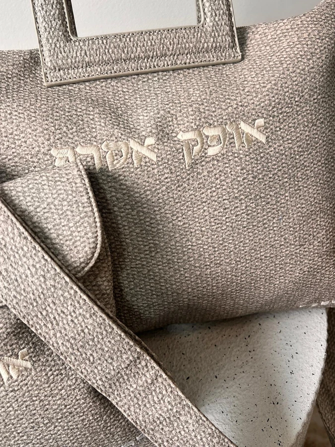 סט כיסויים עם ידית ורצועת נשיאה בגוון בז מראה סרוג