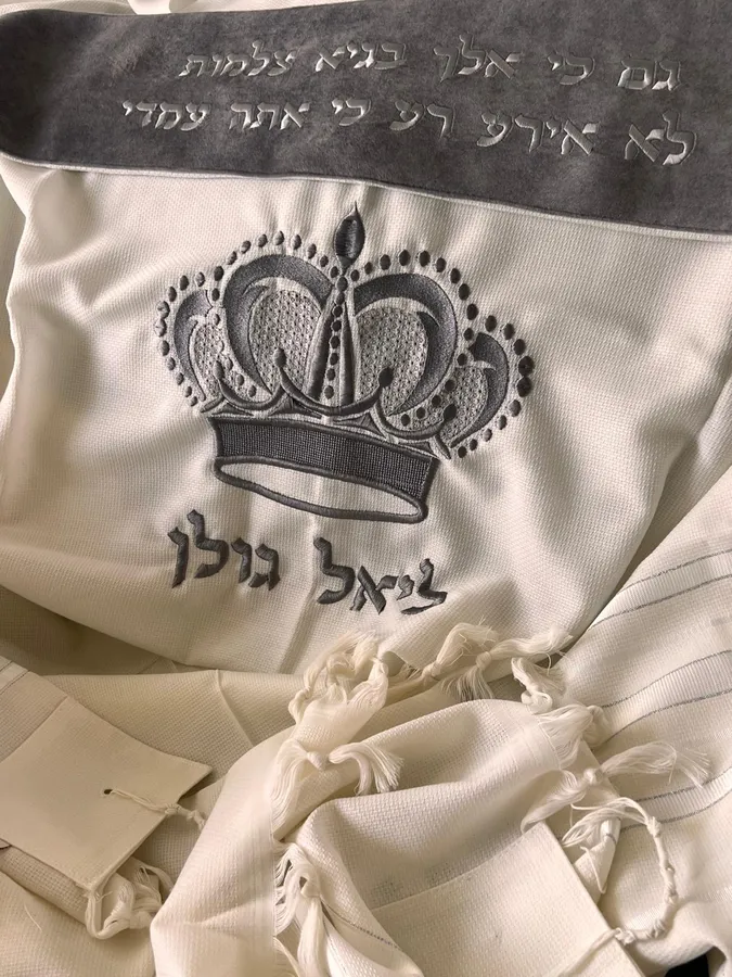 טלית עם עטרה בצבע אפור