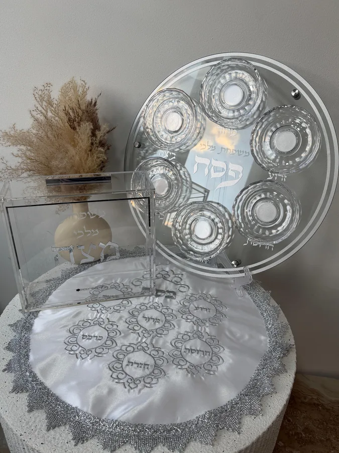 צלחת סימנים קופסה למצה וכיסוי פסח | כסף