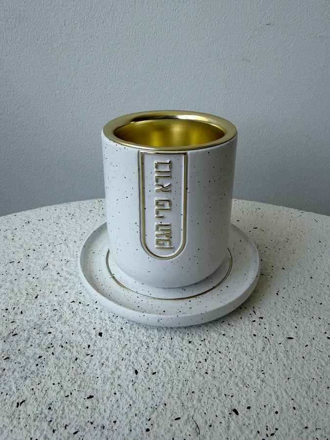 כוס קידוש בטון | לבן זהב