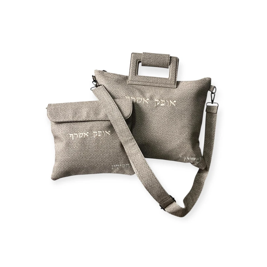 סט כיסויים עם ידית ורצועת נשיאה בגוון בז מראה סרוג